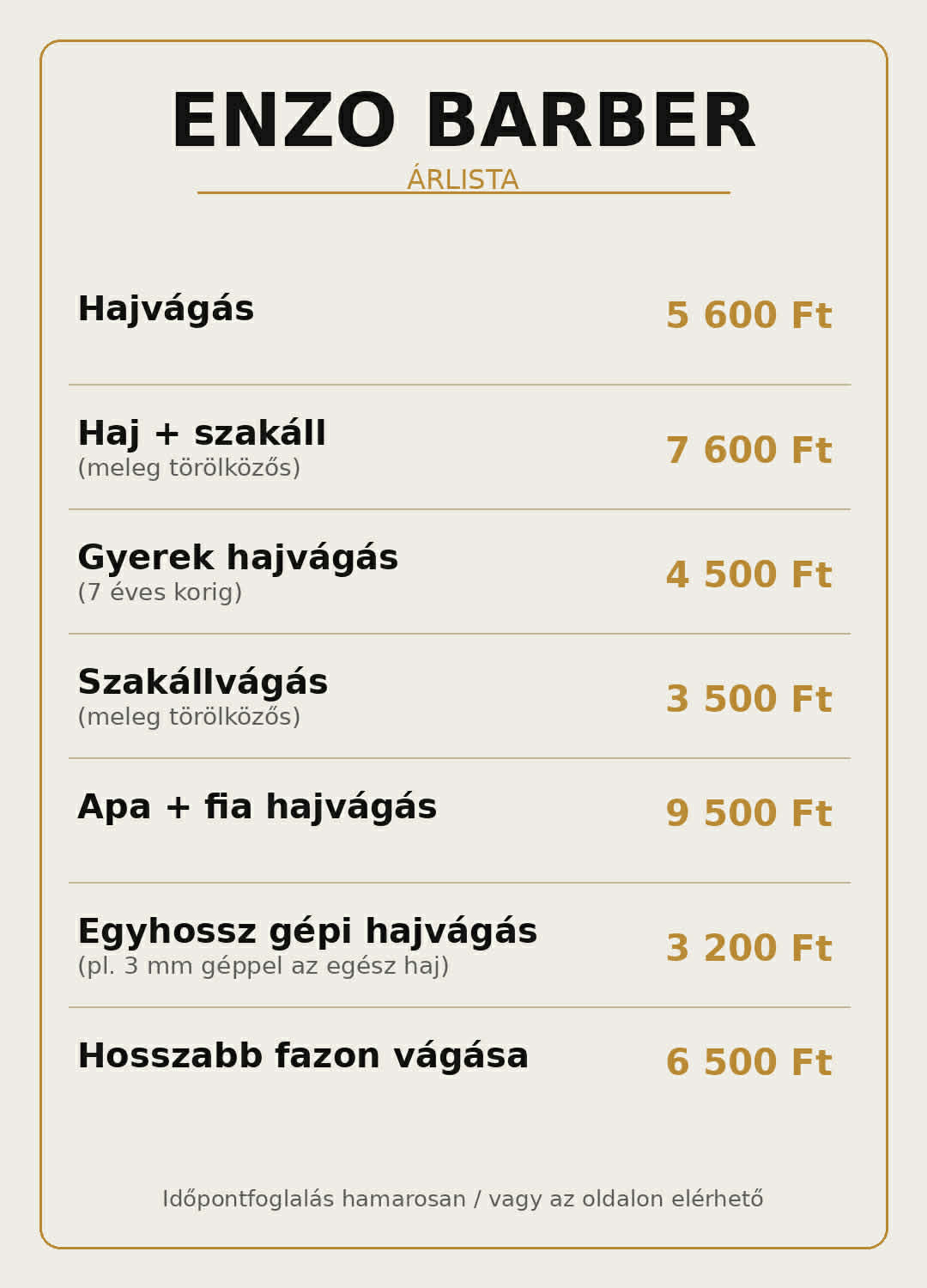 Legyen szó friss fade-ről, klasszikus hajvágásról vagy szakálligazításról, minden munkámat precízen és maximális odafigyeléssel végzem.
